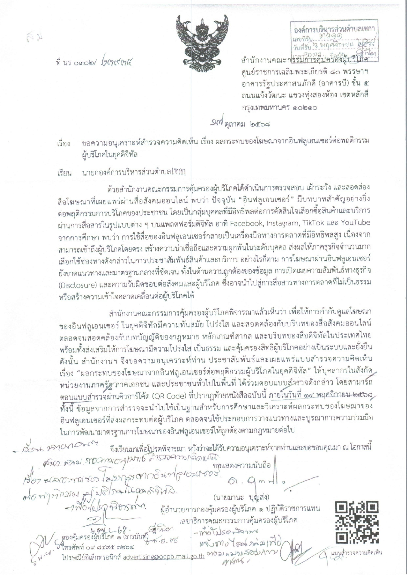 พิจารณา เรื่องการกำกับดูแลโฆษณาของอินฟลูเอนเซอร์ ถึงความโปร่งใส เป็นธรรม