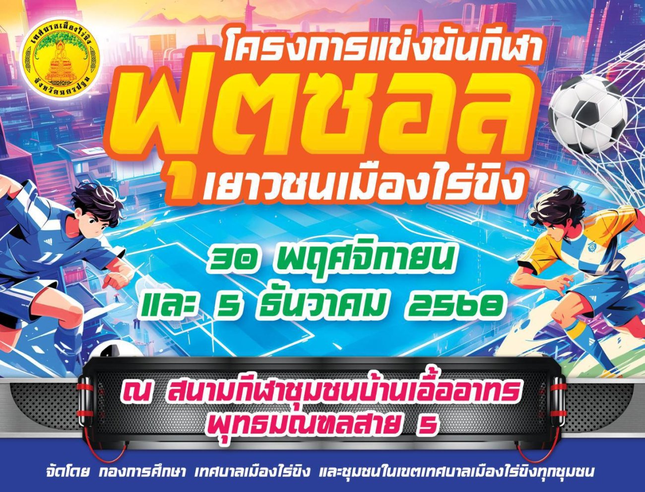 เปิดรับสมัครการแข่งขันกีฬาฟุตซอลเยาวชนเมืองไร่ขิง
