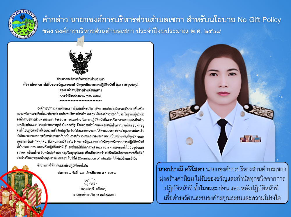 ข้อมูลเผยแพร่ของ อบต.เซกา เพื่อคุณธรรมและความโปร่งใส (Integrity and Transparency Assessment)